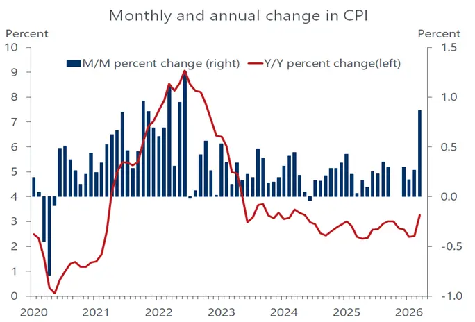 Meanwhile, the knock-on effects of higher energy costs are just starting to bleed into a broader swath of goods and services, piggybacking on tariffs as an inflationary tailwind. The tariff increases are in the rearview mirror, although some may still be passed on to consumers. But the spike in energy prices is having an eye-opening impact on headline inflation. The consumer price index surged 0.9 percent in March, the biggest monthly increase since June 2022, when the oil surge following the Russian invasion of Ukraine sent the CPI up by 1.3 percent. However, the current oil spike has yet to reverberate meaningfully into broader inflation. Excluding energy, the overall price index increased by a muted 0.2 percent last month and the core CPI that strips out both energy and food prices, also came in at a subdued 0.2 percent.