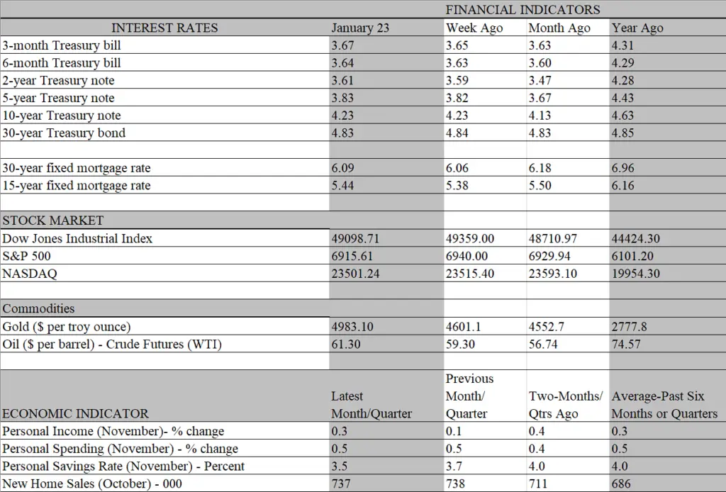 If Benjamin Franklin was alive and able to amend his most popular quote, he might add uncertainty to death and taxes as the only sure events in life. Admittedly, we believed that the arrival of the new year would see a taming of the headline-grabbing uncertainty that buffeted the economy and financial markets in 2025, not to mention the mindset of households and businesses. But hopes for a more tranquil economic backdrop this year have been seriously tested by events in recent weeks. Geopolitical tensions (Venezuela, Iran and Greenland) continue to flare and tariff threats have hardly receded into the background. Unsurprisingly, market volatility returned with a vengeance, stoking wide swings in stock and bond prices. These market swings, however, seem to be serving a vital purpose, sending a signal to authorities that bad decisions have consequences.