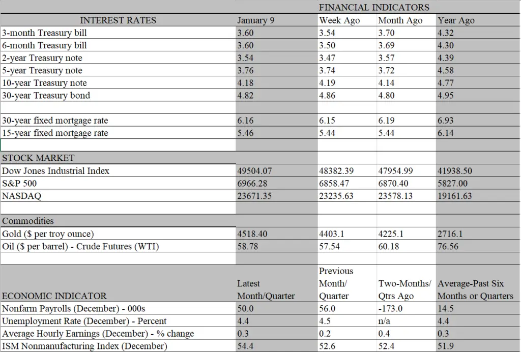WEEK OF JANUARY 9, 2026