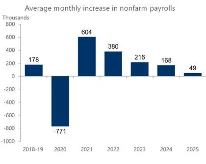 On the positive side, private companies added jobs in every month of the quarter, a respectable showing given the noise surrounding the government shutdown, heightened uncertainty regarding monetary policy and lingering anxiety over the lagged inflationary impact of tariffs. On the negative side, it was the weakest quarter for private-sector job growth not only for the year but going back to the pandemic recession. The landscape looks even darker when government workers are thrown into the mix. Indeed, the government shutdown and DOGE cutbacks played havoc with the overall picture, resulting in an outright decline in payrolls for the fourth quarter, as 179 thousand federal workers fell off the books in October.  Happily, the Federal drag on payrolls is now in the rear-view mirror, as the government actually added some jobs in November and December. Still the 50 thousand increase in total nonfarm payrolls last month was modestly weaker than the consensus expectations of around 70 thousand.